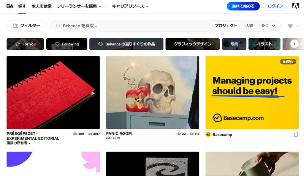 Adobeが運営するクリエイター向けポートフォリオサイト。